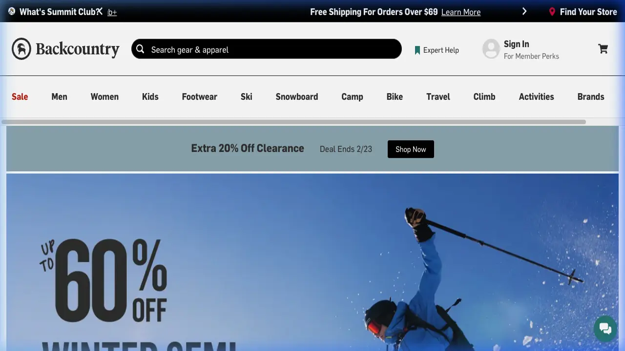 Backcountry(バックカントリー)は、ユタ州で設立されたアメリカのアウトドア用品専門オンラインショップです。スキー、スノーボードからクライミングギアまで、過酷な環境に耐えうる本物志向のニッチなギアが揃うのが特徴です。